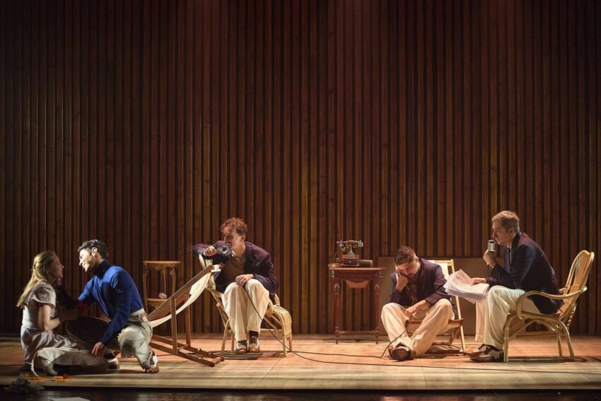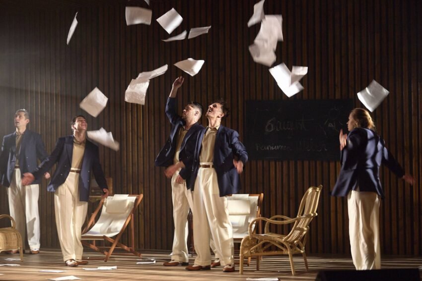 Iar cei patru artiști, Emanuel Becheru, Paul-Ovidiu Cosovanu, Florin Hrițcu și Mircea Postelnicu, decupează și surprind laturi diferite ale lui Sebastian, construiesc fragmente de portret care se topesc una într-alta, se transpun în personajul Ștefan Valeriu, ficțiunea și realitatea se amestecă, se întrepătrund, creând un efect cu totul special, aproape cinematografic. De la pantalonii albi, sacourile închise, pălăriile de paie, respectiv puloverele albastre, elegante, în rolul lui Ștefan Valeriu, la diversele obiecte din scenă care fac trimiteri la perioada respectivă, de la forma microfoanelor la aparatul de radio, la melodiile celebre ale epocii, regia nu reconstruiește neapărat o lume, ci lasă mici borne pentru ca imaginația s-o completeze. Cu energii diferite, cei patru actori jonglează cu diverse nuanțe – spirit ludic, spirit acid, poezie, accente depresive, furie sau neputință – și recompun un Mihail Sebastian care pendulează între Breaza și București, care evadează uneori în universul paralel de la pensiunea Weber sau în muzica lui Bach, trăind în același timp degradarea societății în care fascismul se întinde ca o molimă.